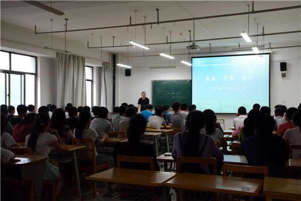 9月6日,学院组织了各班班主任和新生的见面会,各班召开班会观看“入学第一课”PPT, 以“大学新生入学第一课”主题教育为契机,系统开展了“学习方法”、“文明礼仪”、“日常管理”、“安全教育”等多项教育内容,着重强调了大学的学习、生活特点、专业概况、就业格局以及人身安全问题。