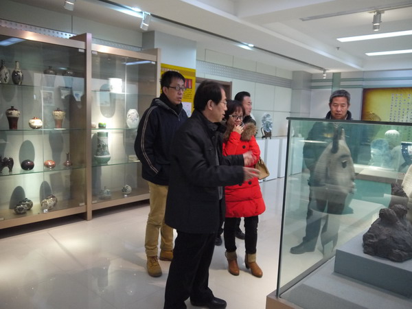 美术学院一行参观了陶瓷研究中心陶瓷艺术品展厅和工作室,陶瓷艺术展厅中陈列着2015年由中心举办的全国陶瓷艺术大赛中的获奖及入选作品,其中我院2015届美术专业毕业生袁月亮、张香兰、何彦红和侯永贵的四件作品也在其列,并得到了专家同行的较高评价。在陶瓷工作室详细了解了陶瓷制作流程、装饰工艺等环节,大家还饶有兴趣地在现场操笔进行了釉上彩的绘制。下午与研究中心各位专家开展了座谈会,就陶瓷地域发展、产学研合作等具体问题进行了热烈、深入的讨论。此行收获颇丰,双方一致认为要把合作落在实处,发挥各自优势,努力为地方文化经济建设做出贡献。