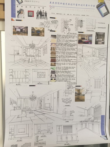 此次展览是美术学院2014级环境设计专业《室内材料与施工工艺》课程的教学成果汇报。通过72课时学习,同学们掌握了常见室内装饰材料的类型、性能及基本的构造工艺做法,培养了在不同类型的空间中选择与运用材料的能力。本次课程作业展也是环境设计专业教师团队运用图形教学法进行课程考核的一次试行,通过在作业中综合运用培养计划中开设的各门课程如手绘效果图表现技法、工程制图、平面版式设计等来培养环境设计专业学生的综合素质。