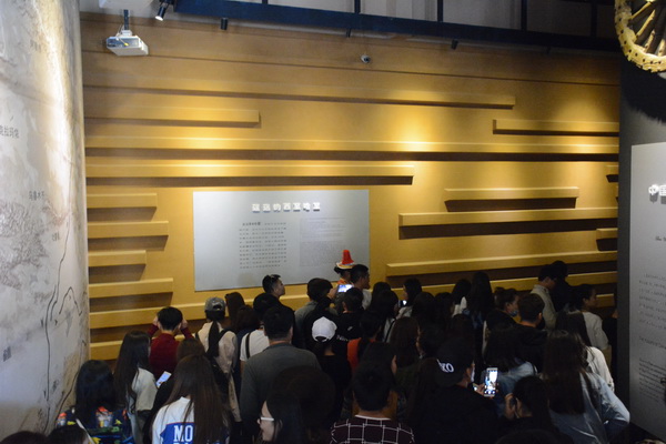 在考察中,首先赴敦煌进行为期两天的考察。敦煌考察期间,正值“丝绸之路敦煌国际文化产业博览会”召开之际。此次国际盛会展出了“花开敦煌-常沙娜艺术研究与应用展”、“港澳台互动媒体展”、“魅力创意”、“书香丝路”、“荣宝斋馆藏精品展”、“世界精品雕塑展”、“文化年展”等展览。此次文博会组织的展览规格高、内容和形式多样,为同学们提供了一场视觉盛宴。参观完文博会后,同学们考察了敦煌博物馆、月牙泉创意小镇等文化和创意基地,开阔了同学们的视野,为同学们此次考察创作和今后毕业设计创作提供了思路。