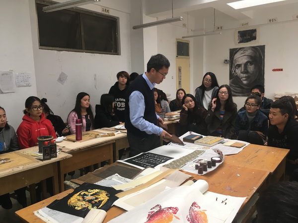 10月25日,由校科技处、美术学院举办,邀请甘肃省工艺美术大师、甘肃省古籍保护中心文物文献修复师、甘肃省工艺协会理事、甘肃省美术家协会会员、兰州市书画装裱技艺非物质文化