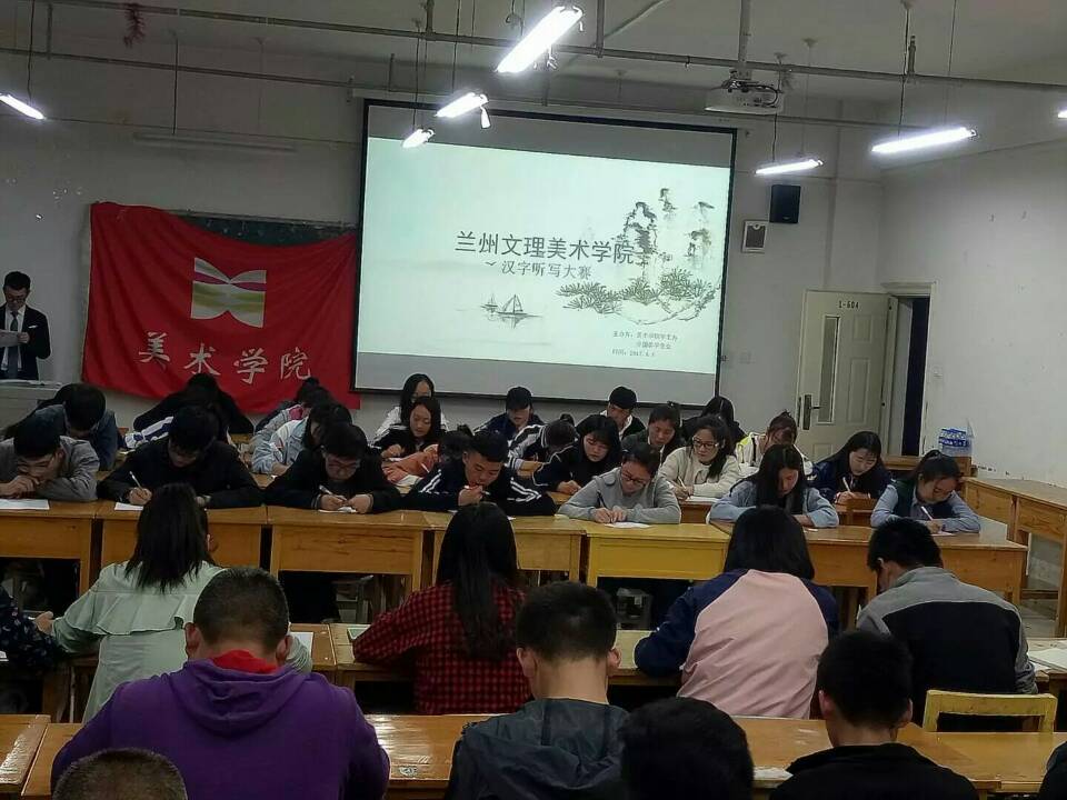 为丰富我院大学生课余生活,领悟中华文化的博大精深,美术学院于2017年4月6日晚上7点在南校区1―604教室举办了汉字听写大赛。大赛由美术学院学工办、分团委学生会承办,参加本次大赛的评委有团委、学生会各部门负责人,2016级各班的35名参赛队员参加了本次活动。