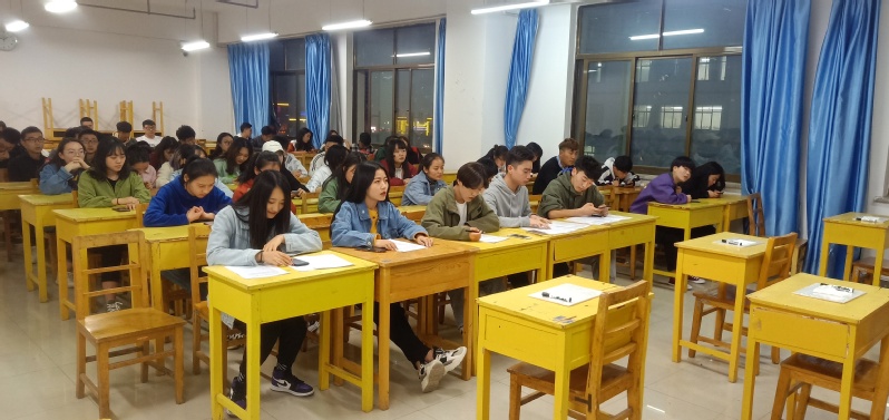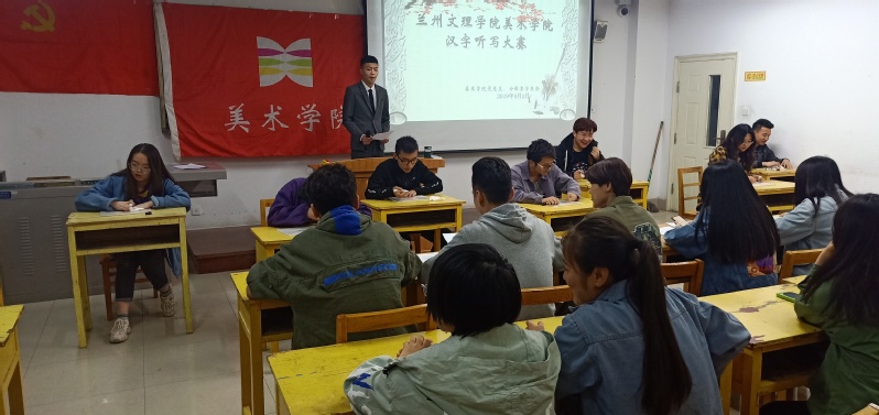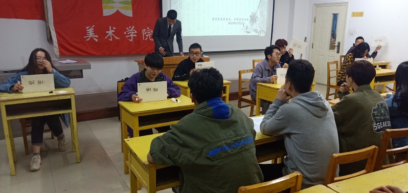 惯,提高学生的文化素养,美术学院根据校团委“第六届礼敬中华优秀传统文化--大学生文化艺术节”的活动安排,如期举行系列活动。2019年4月1日晚,在1-504教室举行系列活动之一汉字听写大赛,2018级全体同学和学生党支部代表参加了此次活动。