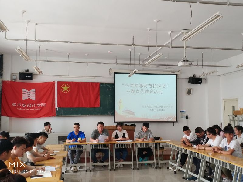 2019年5月23日中午,美术学院学工办以“扫黑除恶防范校园贷”为主题在1-504教室召开学生工作会议。