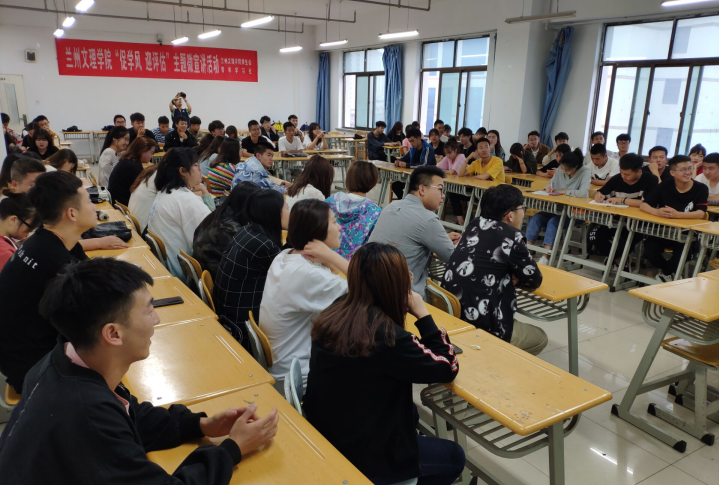 会上,孙书记首先介绍了本次学校合格本科诊断评估工作的基本情况,随后针对我校目前存在的学风问题,如:校园抽烟、上课迟到、教室、宿舍卫生差等,向同学们提出几点要求:一是要求同学们在校园里着装得体、端庄有礼、讲文明。二是远离校园贷,告诫大家敲响警钟不要闯红线。三是保持宿舍、教室干净整洁,不使用违规电器。最后,孙书记对同学们寄予厚望,倡导大家以评促建,积极将行动落实到实践中去,努力争做优秀大学生。