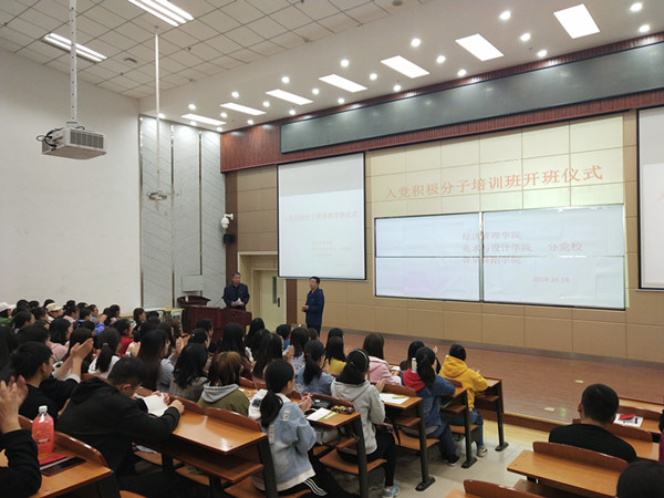 10月29日中午,经济管理学院、yl7703永利、音乐舞蹈学院分党校2019年秋季入党积极分子培训班开班仪式在5-205教室举行。开班仪式由yl7703永利党总支书记贾志明主持。