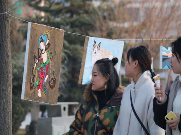 2019年12月9日下午,奕鸣美术协会在思源楼广场举行奕鸣美术协会第一届综合材料装饰画展及油画画展,协会指导教师王亦慧,奕鸣美术协会负责人、各部门部长以及2018、2019级协会成员参加了此次画展。