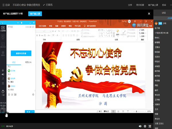 讲座以《不忘初心使命,做合格党员》为题,通过回温历史、立足当下和展望未来三个方面讲解初心和使命的真正含义,从红船精神到南昌起义、从新中国成立到改革开放、从汶川地震到抗击新冠肺炎等一系列大事件的讲述,体现共产党人的初心和使命。通过学习学员们进一步端正了入党动机,政治理论素养得到提升。莎莉老师鼓励大家树立责任意识、纪律意识和奉献意识,认真思考如何以实际行动积极向党组织靠拢。