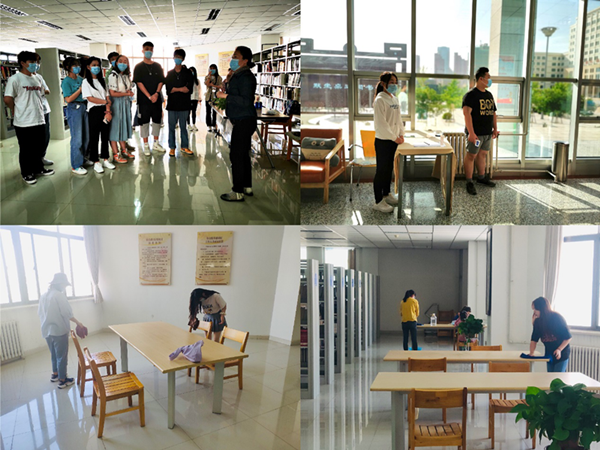 在图书馆管理员的带领下,各小组成员轻声有序进入图书馆二楼,依照既定分工,开展志愿者服务工作。活动内容主要是有序、分类整理图书,为新图书入库腾空间,打扫图书馆公共区域卫生,对相关设备进行擦拭消毒以及规劝不文明行为等。活动过后,大家主动坐在一起交流感受总结遇到的问题并商议改进措施,共同提高服务质量