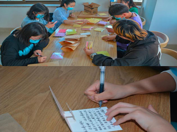 活动现场,志愿者们结对为留守儿童手写了一张张祝福语贺卡,关心他们的生活、学习和心理健康状况,通过这种方式与小朋友交心谈心、帮教助困、弥补情感缺失。此外,志愿者还对留守儿童进行了联系慰问,为孩子们邮寄了一些有益书籍和生活用品,礼物虽小,却代表了所有志愿者的一份希望、一份关怀和最美好的祝福。