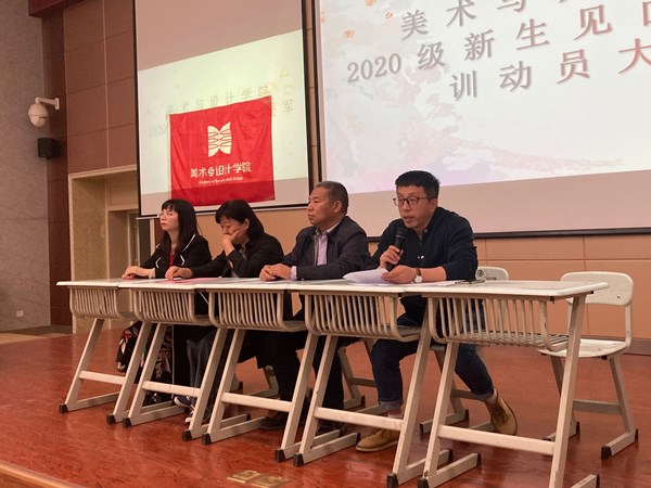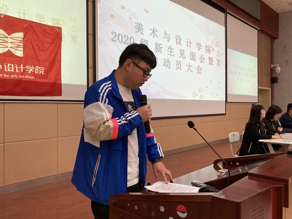 李院长首先对新生们的到来表示欢迎,并介绍到场的领导班子成员及教师。仇院长详细介绍了学院的历史沿革、办学特色、培养目标、教学条件及近几年来取得的成绩,希望同学们珍惜难得的读书时光,努力探索,敬畏专业,养成良好的学习习惯,处理好与老师同学的关系,严于律己、苦练本领,在各个方面取得优异成绩。2018级环境设计1班朱大海和2020级视觉传达设计2班何珺茹分别作为往届生和新生代表发言。