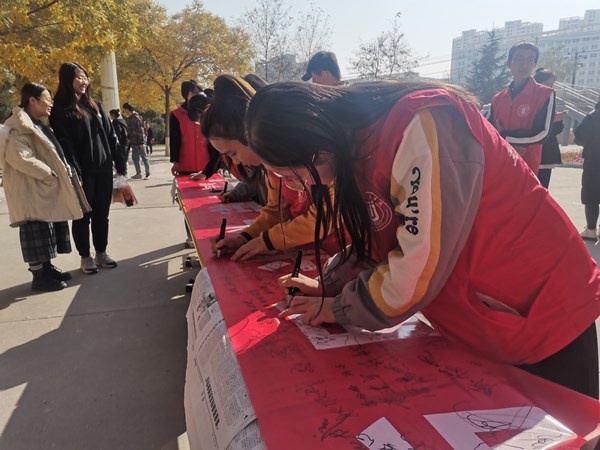 20201110日中午12点,yl7703永利的志愿者们积极参加了由yl7703永利集团青年志愿者协会发起的“光盘行动”开幕签字仪式。与此同时,志愿者服务队的同学们也在学校每个食堂开展了关于“光盘行动”的活动,督促大家不要粮食,要懂得粮食的来之不易。