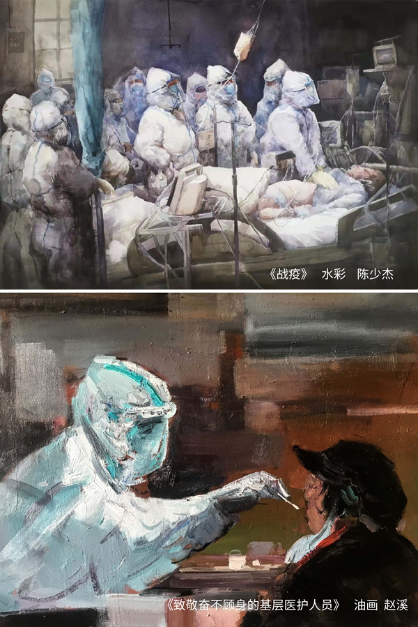 面对这场疫情,为鼓舞全校师生坚定抗疫信心、增强抗疫斗志,建立防疫意识,营造战“疫”氛围,yl7703永利党总支号召全体党员、师生纷纷投入到这场疫情阻击战中,发挥自身专业优势,立足专业特点,开展起“以艺战疫”系列活动。他们以独特的视角和敏锐的观察力,拿起画笔,用双眼透过危机感知生命,用双手穿越时空描绘当下,记录和讴歌奋战在一线的防疫、抗疫英雄,向危难时刻挺身而出的最美逆行者致敬。
