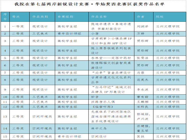我院多年来持续推进实施“以展促教、以赛促学”的学生实践能力提升工程,支持和组织师生参与各类专业竞赛,积极拓展赛事的种类取得成效。华灿奖作为业内的知名赛事,经过学院设计研究所认真准备、精心组织。首次参赛就获得了15个奖项。充分证明了我院近年来在学科竞赛方面取得的长足进步,彰显了学院师生在实践能力发面的有效提升。