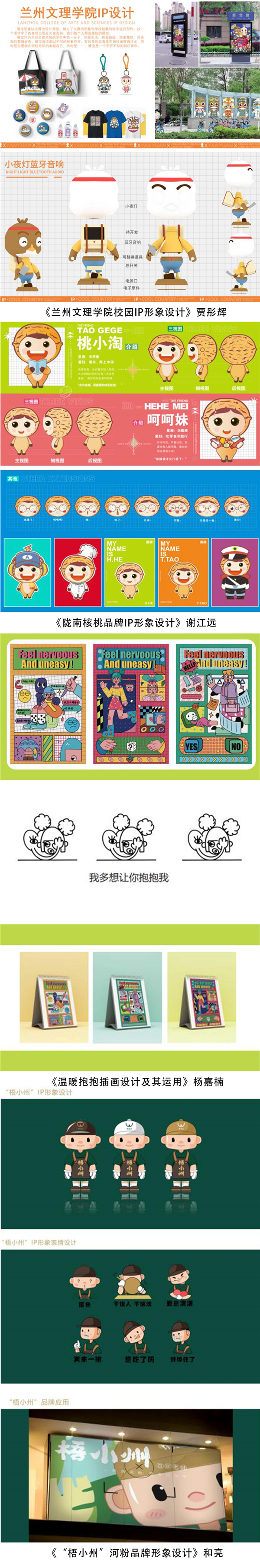 本次作品展在樊华老师的指导下,同学们经过一个月的精心创作共展出了49件设计作品,实训内容结合即将开展的毕业设计,从“甘肃地域文化”、“当今社会热点及现象”、“非物质文化遗产”等方向进行选题,设计的内容包括:品牌标识设计、IP形象设计、插画、包装设计以及相关衍生品设计,涵盖了同学们大学所学习的专业知识,考查了专业综合能力。