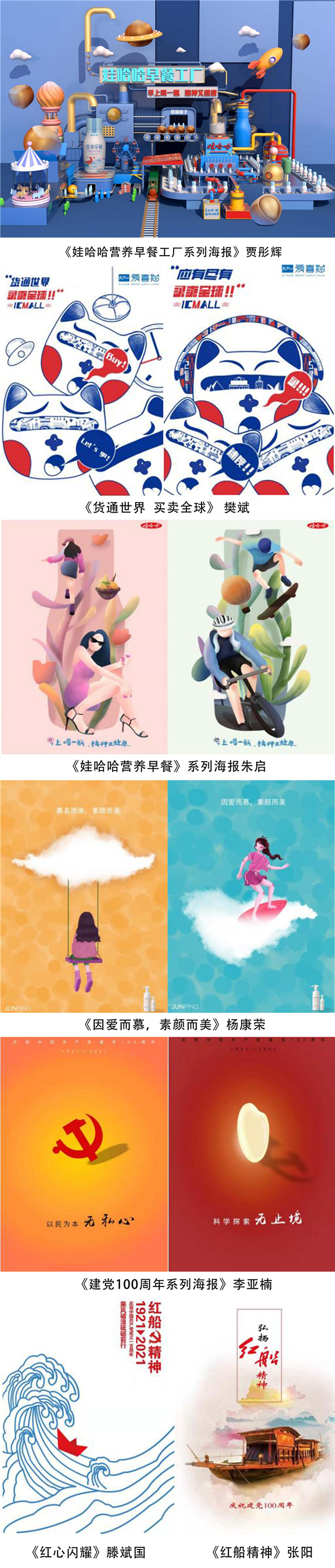 《广告设计》课程作为视觉传达设计专业的核心课程之一,对于培养学生专业设计及应用能力起到关键性的作用。此次课程内容安排结合我院“以赛促学、以展促教”的理念,以建党一百周年时效命题、以及大学生广告艺术大赛商业选题做为课程作业内容,培养学生设计参赛意识,提高同学们对设计服务的功能认识。此次课程作业在樊华老师的指导下,以及同学们用心努力地创作下产生了很多优秀作品,在参加“甘肃省博物馆·鑫昊馨”杯建党100周年主题大赛、“2021第十一届大学生广告艺术创意大赛”中取得二等奖两项,三等奖两项,优秀奖三项的优异的成绩,达到了很好的教学效果。