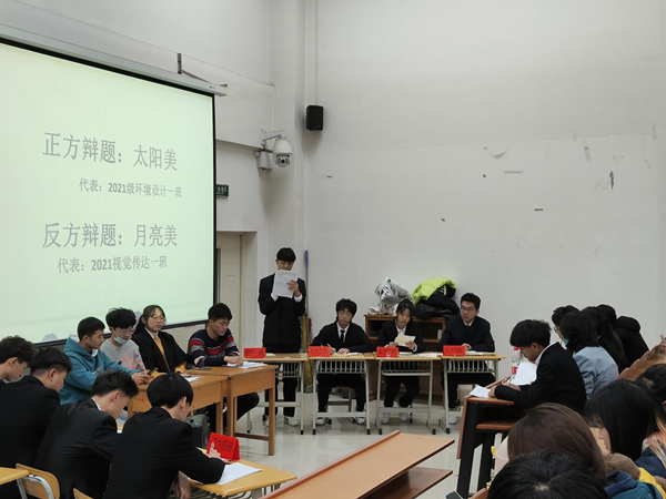 初赛阶段,方辩手依次陈述各自观点,赛场气氛紧张激烈,比赛有秩序的进行。在复赛的角逐中,双方条理更加清晰,队友间配合也越发默契,不断找寻对方辩友的漏洞。最后,经过四场激烈的比赛和评委们公正的评判环境设计一班夺得冠军,环境设计一班张宝艺和视觉传达设计二班金雪获得了“最佳辩手”荣誉称号。