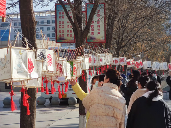 此次参与展览的作品种类繁多,有粘土、灯笼、剪纸、面具、扎染、学生绘画等作品。这些作品主题鲜明,内涵丰富,其中灯与剪纸部分,同学们各显其能,学以致用,把老师教授的民间特色剪纸技艺应用到了其中。本次活动依然延续第一届艺术节猜灯谜环节,此外也添加了投掷游戏、留言祝福等内容。
