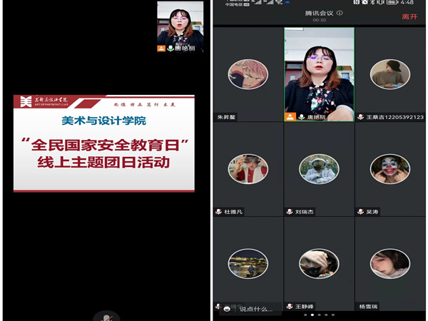按照学校团委的文件要求,2022年4月7日下午,学院分团委开展第七个“全民国家安全教育日”线上主题团日活动,全体班级团支部书记、学生会干部参加,活动由团学办主任唐艳丽主持。