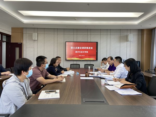 2022年9月20日,副校长张金尧一行到美术与设计学院调研设计专业硕士点建设情况,人事处、发规处、科技处相关负责人陪同调研。学院领导班子、教研室主任、骨干教师参加了调研活动。
