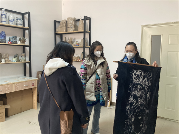 最后,老师们观摹了温晓晖老师的羊毛擀毡课程,并与温老师和正在上课的同学们进行了讨论与交流,进一步深入了解了我们的专业优势、特色及教学方式,并计划来我校就羊毛擀毡、扎染等课程进修学习。