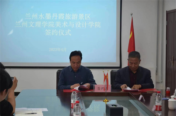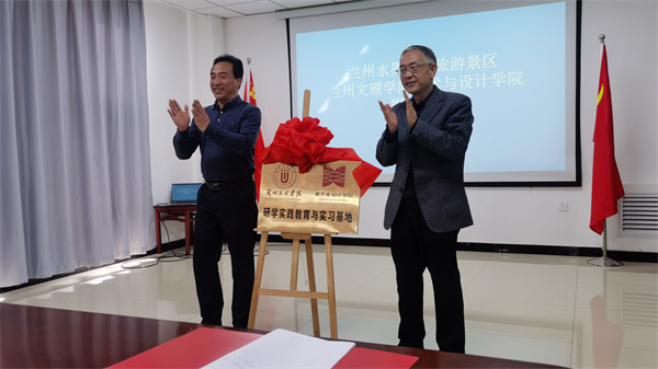 签约仪式上李敏骞与兰州文化旅游产业发展集团有限公司党委副书记、监事会主席温得元为“研学实践教育与实习基地”共同揭牌;贾志明书记与温得元主席共同签订“研学实践教育与实习基地战略合作协议书”。