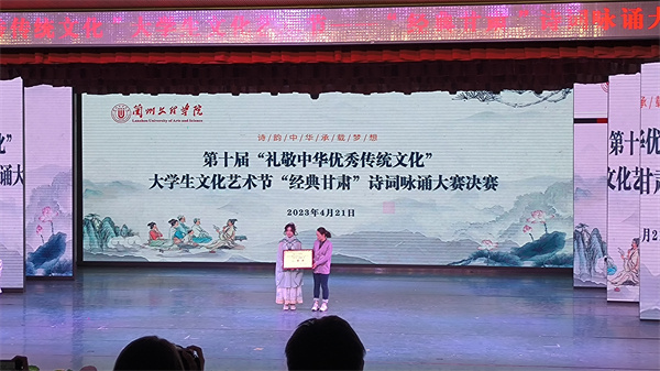 为弘扬中华优秀传统文化,讲好甘肃故事,引导青年大学生坚定文化自信。2023年4月21日晚上7点,南校区实验剧场举办第十届礼敬中华优秀传统文化大学生文化艺术节经典甘肃诗词咏诵大赛决赛。