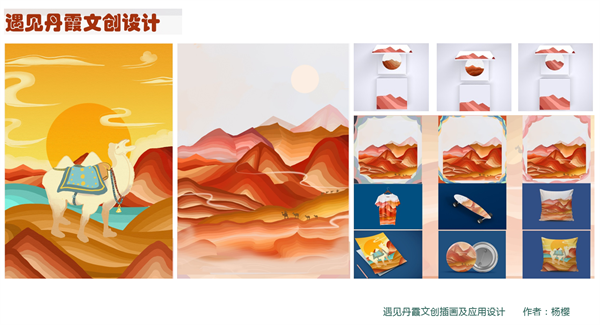 本次课程作业展选题包括悠游兰州文创产品设计、水墨丹霞文创产品设计、定西养生文创设计、九香玫瑰文创设计四个主题方向。在实践环节中,以当前市场需求与政策为导向,结合实际项目案例,提高学生适应社会需求的设计能力,加强了学生原创意识的培养以及创新创意能力的提升,并规范了设计流程,奠定了良好的职业素养。