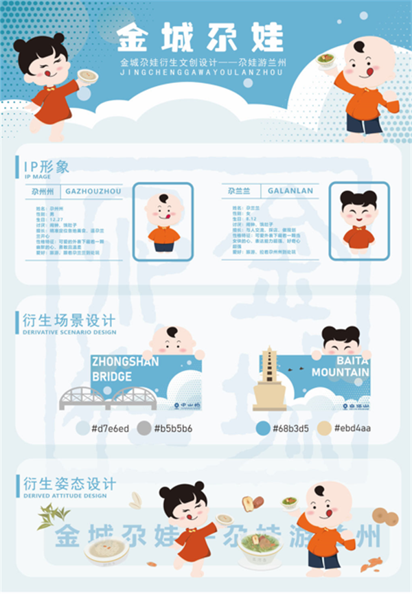 本次课程作业展选题包括悠游兰州文创产品设计、水墨丹霞文创产品设计、定西养生文创设计、九香玫瑰文创设计四个主题方向。在实践环节中,以当前市场需求与政策为导向,结合实际项目案例,提高学生适应社会需求的设计能力,加强了学生原创意识的培养以及创新创意能力的提升,并规范了设计流程,奠定了良好的职业素养。