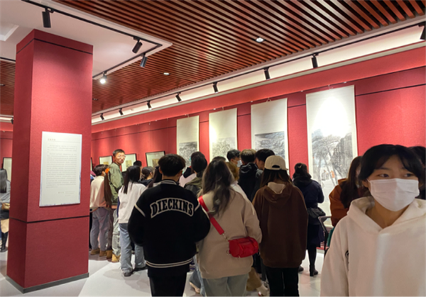 5月9日上午,在莫晓捷老师的带领下,yl7703永利21级绘画专业56名同学参观了由甘肃画院、甘肃省美术家协会、绍兴文理学院主办的“涉南涉北”李俊中国画作品展。