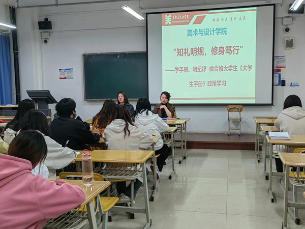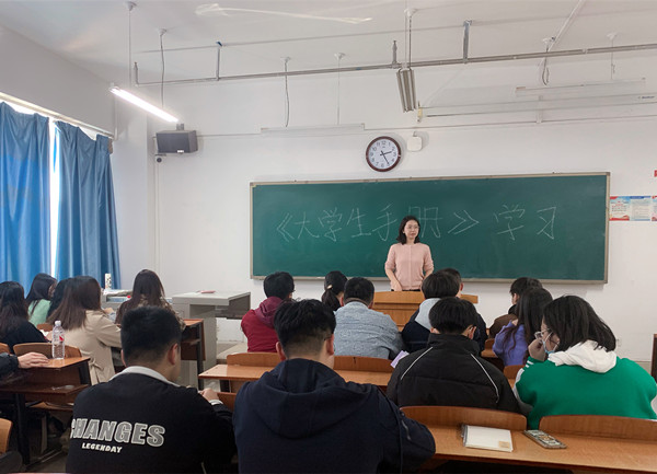 根据学校“学手册、明纪律、做合格大学生”活动要求,为践行“为党育人,为国育才”使命,落实立德树人根本任务,提高学生规矩意识与自身修养,我院于2023年5月24日中午在励志楼304教室开展“知礼明规,修身笃行”——《大学生手册》政策学习主题活动。活动由辅导员李贺主持,辅导员孙晓桐、各年级班长、学委、团支书以及全体学生会成员参加。