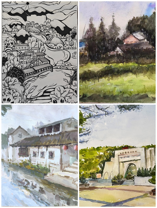 (2021级环设2刘宏涛作品《甘肃省平凉市庄浪县水洛镇》、汪腾作品《甘肃省陇南市文县李家坪村》、苗鑫熠作品《甘肃省陇南市文县碧口古镇》、张凌作品《甘肃省庆阳市华池县南梁镇南梁革命纪念馆》)