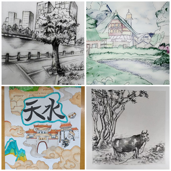 绘岁月变迁、画时代繁华,家乡的山山水水,一草一木给了同学们绘画的灵感。通过“绘•美家乡新风貌”的视角同学们发现了家乡的新变化,表达了他们对故乡的热爱和祝福,有利于同学们扎根甘肃大地,躬身实践积极投身到火热的乡村振兴中,为家乡的发展贡献艺术的力量。