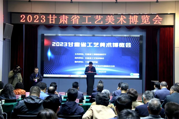 由甘肃省工业和信息化厅主办的“2023甘肃省工艺美术博览会”于2023年10月12日上午在甘肃省艺术馆隆重开幕,我校副校长李敏骞受邀参加博览会开幕式并致辞。