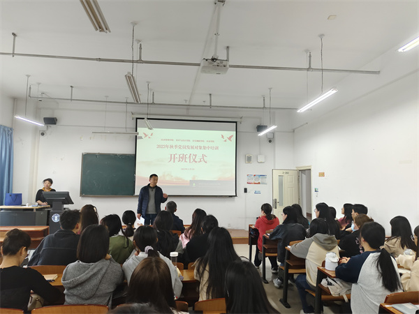 在开班仪式上,经济管理学院张全红书记对本次培训班的授课方式、课程安排、纪律要求、考核要求等相关事宜作了详细介绍,希望各位学员能严格要求自己,端正态度,学有所获,并预祝学员们早日成为一名光荣的中国共产党员。
