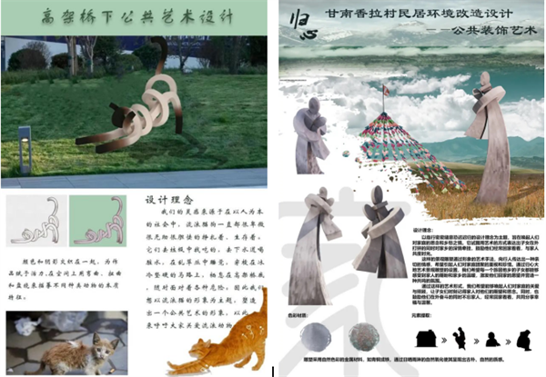 同学们通过理论学习和实践相结合的方式,掌握了公共装饰艺术的基本概念、设计原则和方法。通过观察、分析和解读各类公共装饰艺术作品,理解了创作者的设计理念和审美视角,也激发了自身的创作热情。学会了如何从多元化的文化、历史和环境中汲取灵感,并将个人兴趣、公众需求和环境因素等纳入考虑,进行创新性的设计和规划,同时更加深入地了解了装饰艺术与社会、文化、历史和环境等之间的关系,以及它在现代城市建设和公共空间设计中的重要地位。