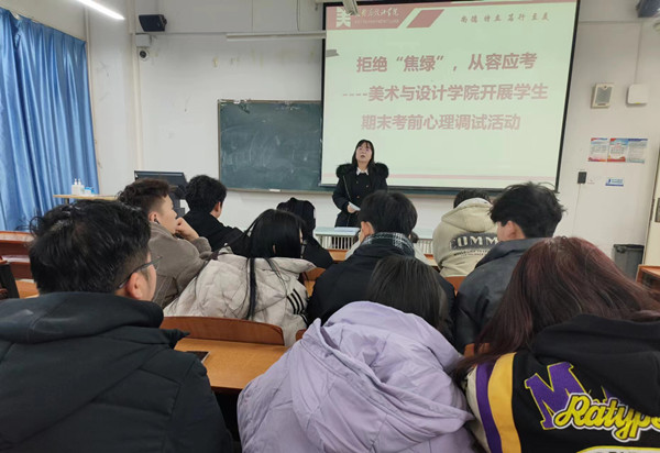 为了进一步加强学院心理健康教育工作,缓解学生考试焦虑,更好地帮助学生克服考试的恐惧、释放压力、合理宣泄不良情绪,以平和的心态、饱满的热情积极备考,2023年12月28日,学院在强能楼202教室开展拒绝“焦绿”,从容应考学生期末考前心理调试活动。活动由yl7703永利集团“心海导航”辅导员名师工作室负责人唐艳丽主持,学生会以及学院全体学生干部参与。