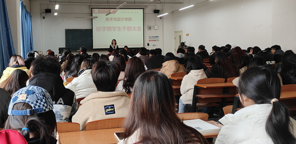 会上,唐老师就本学期学生管理方面的常规工作、学生校园文化活动以及重点特色工作进行了安排和部署。本学期学院学生工作管理常规工作有:一是以班级团支部为抓手利用青年大学习平台,积极开展思想理论学习;二是务实开展班级学风建设工作,班干部强调上课出勤,组织开展主题读书会、主题团日等活动,让班级活动活起来;三是关注学生心理健康教育,强化公寓安全;四是积极参与校园文化活动,提高同学们的实践能力。重点工作有:继续强化“画”中有“话”的学风建设特色,开展“以美润心 铸魂育人”美育品牌特色活动;提升“以美慧心 铸魂育人”、“绘美家乡”两个品牌社会实践活动的质量。