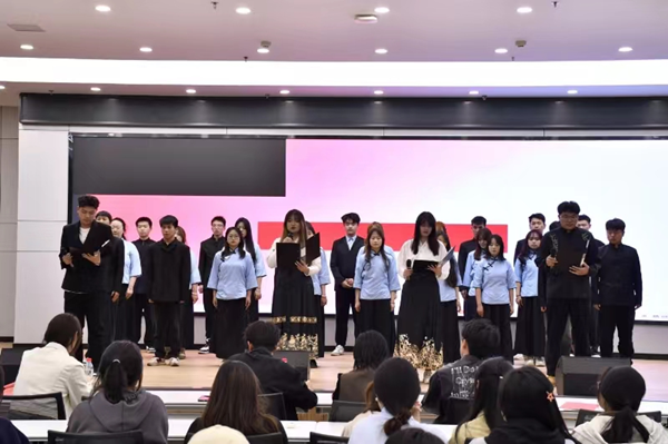 我院参赛选手汪锦仡、张依一、刘锦鹤、王佳琪、温倩、赵楠楠、伍亚东等同学,以《中华少年》为题深情朗诵,作品以其磅礴的气势和深厚的文化内涵,展现了中华少年的风采和志向触动人心。比赛现场,选手们情感丰富饱满、形象自信大方,比赛内容和形式更是丰富多彩,赢得了同学们的阵阵掌声。
