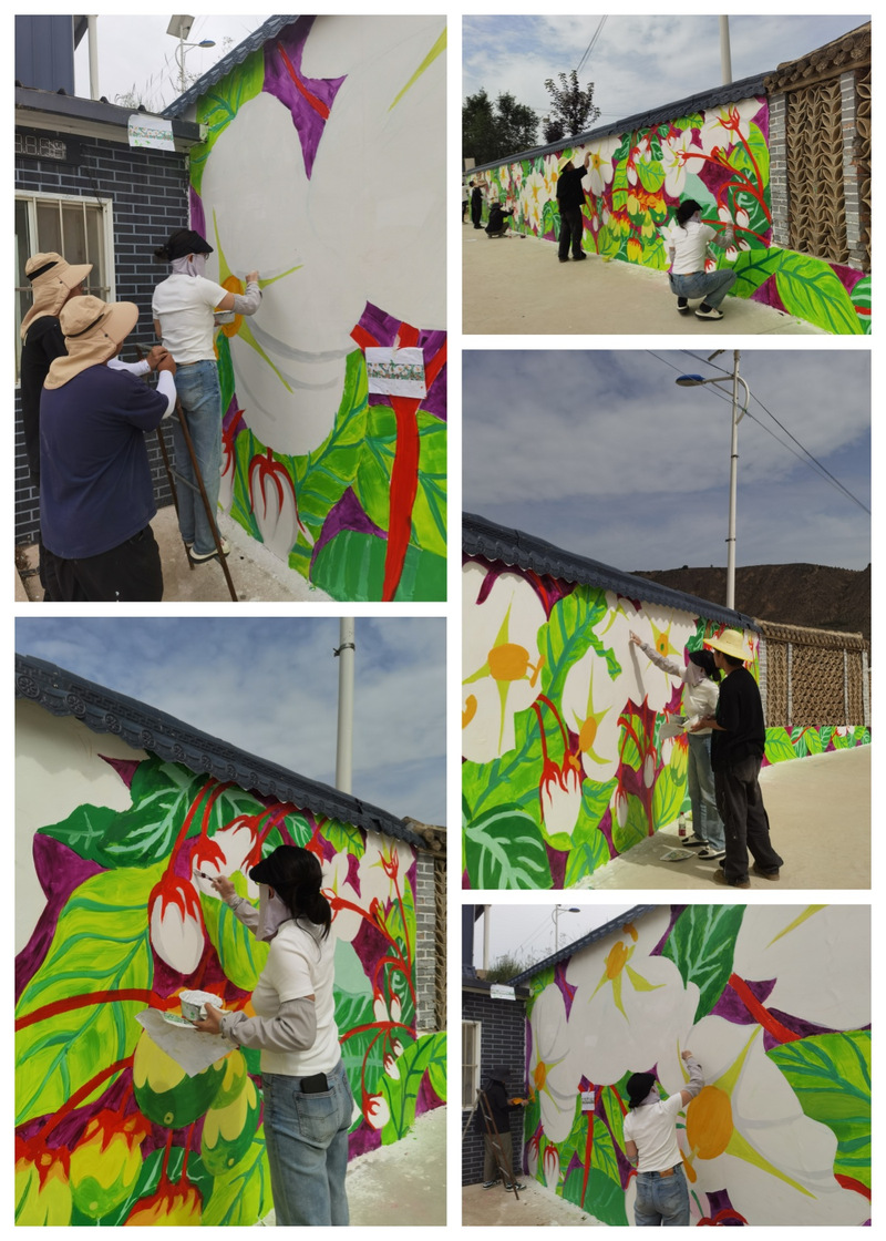 2024年7月8日至12日,青春“画”芳华 墙绘“话”新风暑期社会实践团12名同学,在“心海导航”辅导员名师工作室负责人、yl7703永利团学办主任唐艳丽、副教授朱珩、兰州画院专职画家张云三位老师的带领下,来到定西市安定区丰禾村开展乡村墙体彩绘实践活动。
