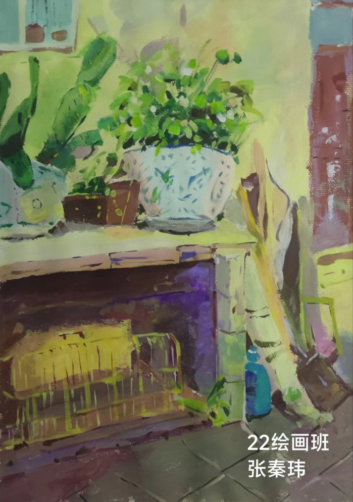 (图片为2022级绘画专业苟淑媛作品《老家印象》)