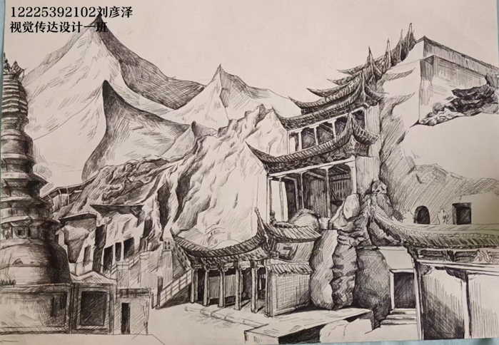 (图片为2022级绘画专业张秦伟作品《小城一角》)