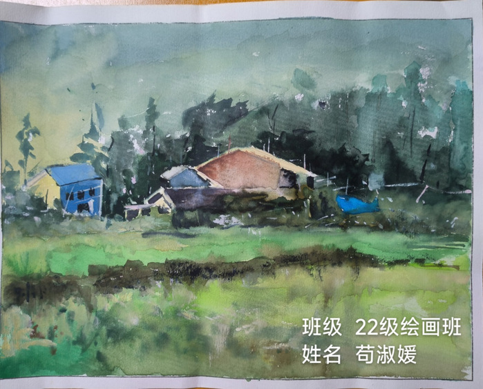 (图片为2022级绘画专业苟淑媛作品《老家印象》)