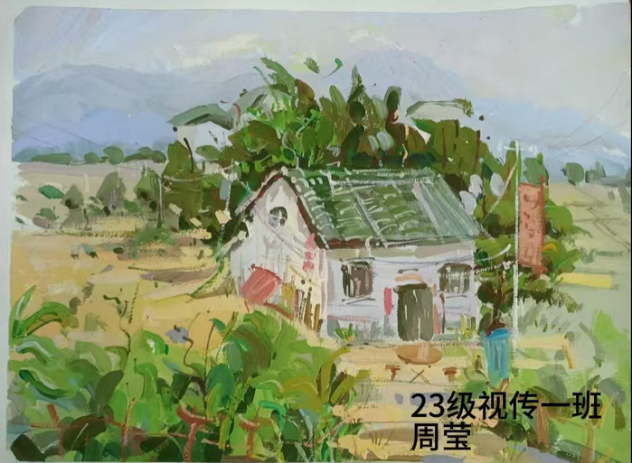 (图片为2022级绘画专业沈耀强作品《农里人家》)