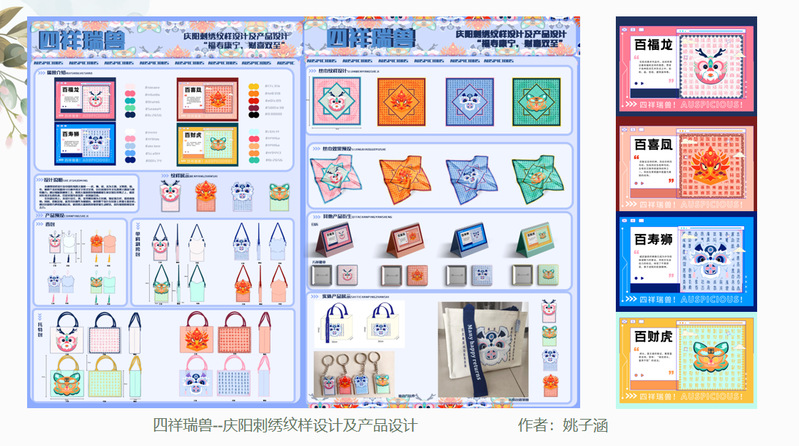 《丝路文创产品开发与设计》课程是视觉传达设计专业学生大学三年级最后一学期的综合设计实践课程。课程依托地域文化,以文创产品设计为核心,主要学习了文创产品设计的基本理论和设计技能。选题包含“陇上非遗”文创产品设计、“雁苑文创”校园文创产品设计、陇南立县设计三个主题方向。在实践环节中,以当前市场需求与政策为导向,结合实际项目案例,提高学生适应社会需求的设计能力,加强了学生原创意识的培养以及创新创意能力的提升,并规范了设计流程,奠定了良好的职业素养。