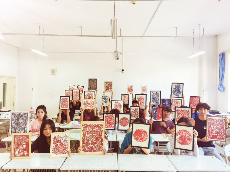 本次课程采用智慧树慕课平台,以线上视频讲授理论,线下项目化实践主题教学为主。此次展览共展出剪纸作品100余幅,作品以甘肃的民间吉祥图案、龙凤图腾为主要题材,通过剪纸的形式把皮影、戏曲脸谱、经典工笔画局部元素作为创作素材,丰富了剪纸艺术的表现形式。