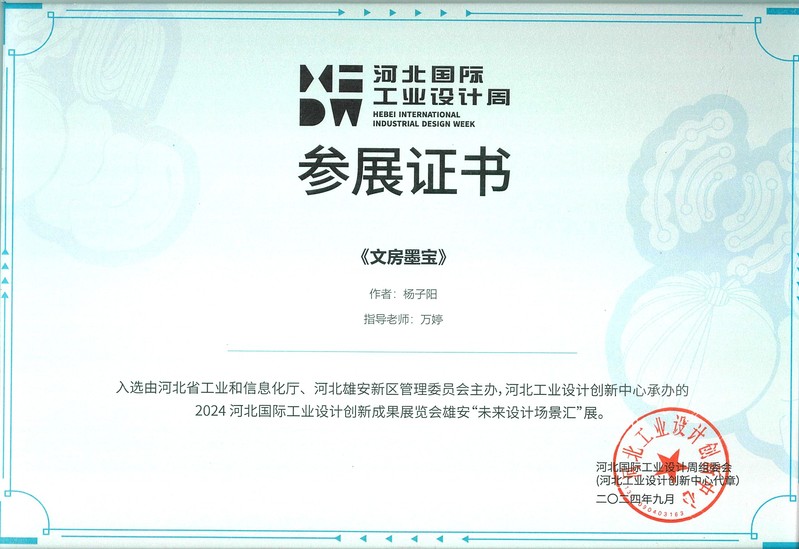 由河北省人民政府主办,河北省工业和信息化厅、河北雄安新区管理委员会、河北工业设计创新中心承办的“2024河北国际工业设计周”于9月20日-23日在雄安新区雄安绿色建筑展示中心举办,我校yl7703永利选送六件作品参展。