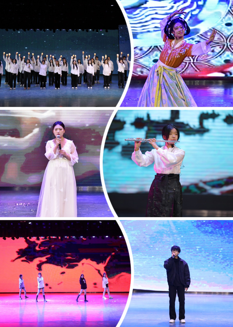 晚会在一首激动人心的集体大合唱《夜空中最亮的星》中拉开帷幕,24环境设计一班全体同学大家齐声高唱《夜空中最亮的星》,歌声充满了力量和希望,正如歌曲所传达的那样,每一位师生都是学院夜空中最亮的星,照亮彼此的前行道路。随后古典舞《神话》、《美人关》舞姿卓越,器乐长笛《浮光》如同天籁之音,清澈悠扬,现代舞蹈串烧点燃了全场的气氛,青春活力的美院学子尽显风采。节目最后绘画班的同学们手牵手走上舞台,齐声唱起《多幸运》,歌声清澈、和谐,每个班拿出的节目都精彩至极,场下观众掌声不断。