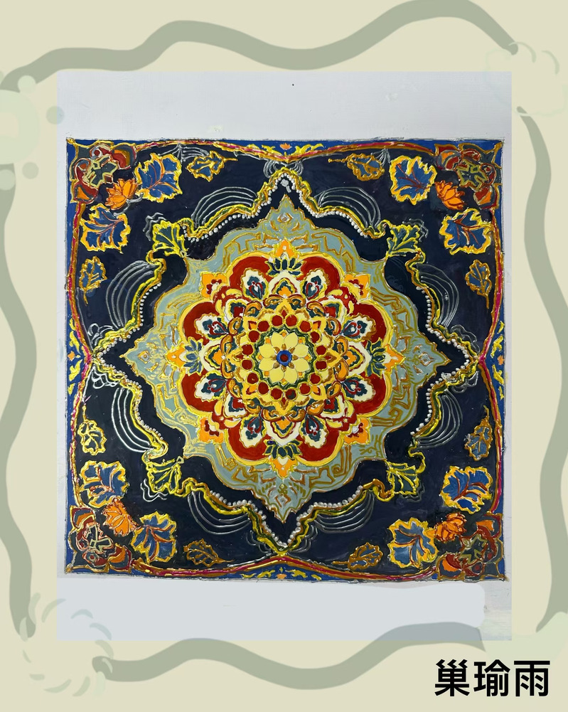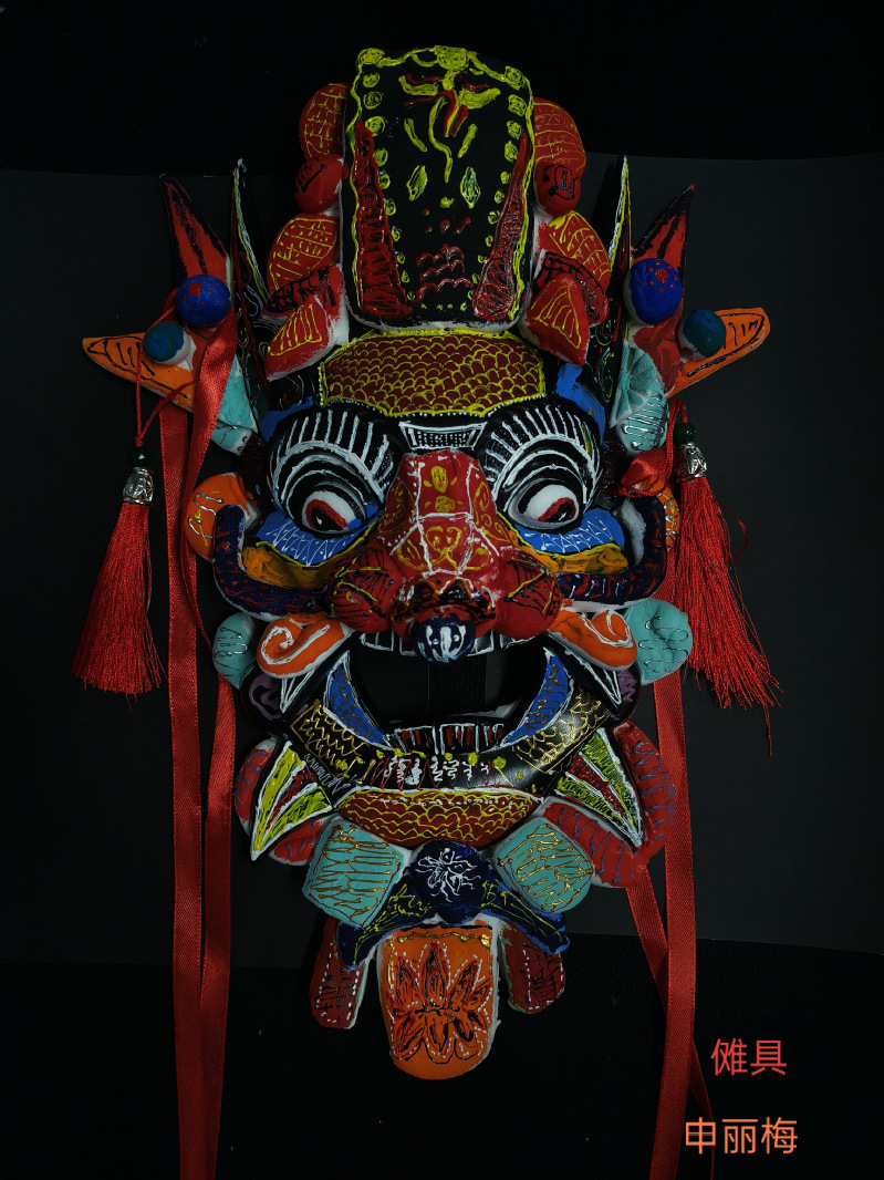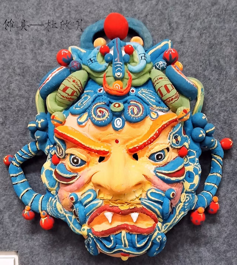 展览汇集了学生们在二维设计领域的创新思维和实践成果。展览不仅展示了学生们的艺术才华,也体现了他们对戏剧影视美术设计的深刻理解和独特视角。其中,傩戏面具尤为引人注目,每一处线条与色彩的搭配都诉说着古老傩戏文化的故事,独特的造型仿佛将传统民俗的灵魂封印其中。纸浆藻井则展现出别样的精致,学生们通过纸浆塑形,重现了藻井那美轮美奂的结构与装饰,细腻的纹理和精美的图案彰显出对传统建筑艺术的深刻理解。沥粉画以线条勾勒出或刚劲有力或婉转流畅的画面,金粉银线在光线下闪烁,为画作增添了奢华质感。肌理画更是创意无限,学生们巧妙运用各种材料,创造出丰富多样的纹理效果,或粗糙、或细腻,每一幅都给人以独特的触感与视觉冲击。