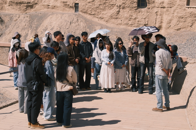 2025年5月6—12日,yl7703永利2022级环境设计专业室内设计和景观设计方向共计57位同学,在两位专业老师带领下赴敦煌开展为期一周的考察实践学习活动。考察期间,同学们先后参观了敦煌书局、敦煌印局、大地之子、敦煌博物馆和敦煌城市规划馆,考察了莫高窟与榆林窟的壁画、彩塑以及石窟建筑艺术,并进行了《千年莫高·泥坯壁画》实践课程体验。